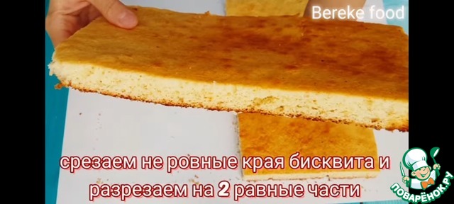 У бисквита на противне срезаем края и делаем с нее крошку.