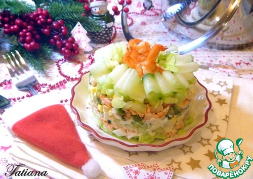 Нежный, хрустящий, легкий и вкусный салат с лососем и креветками. Совсем немного дней осталось до нового года, и праздничное меню хочется сделать как можно разнообразнее. Присмотритесь к этому интересному салату, возможно он придется по вкусу вашим близким и станет достойным украшением праздничного стола.