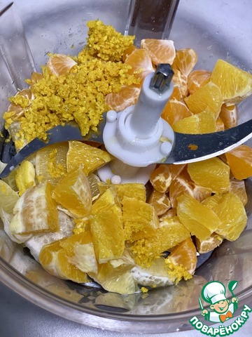 В чаше блендера соединил все с цедрой. И измельчил. Порубил так, чтобы остались хоть мелкие, но кусочки ягодок.