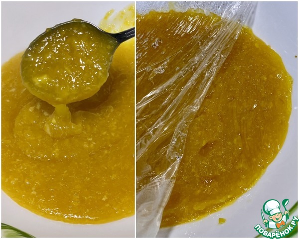 Получившуюся смесь накрыл плёнкой «в контакт» предотвратить образование корочки. Смесь должна остыть до комнатной температуры.