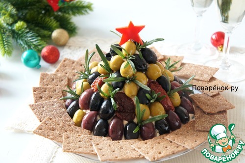 Ингредиенты для «Сырная ёлочка с оливками»: