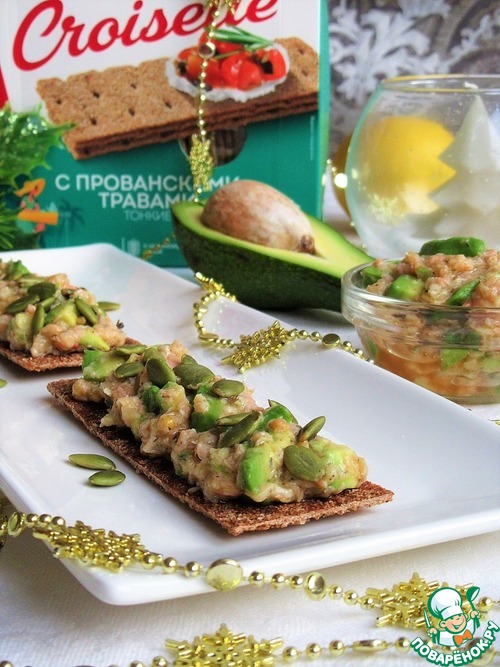 Салат из семги и авокадо на хрустящих хлебцах с прованскими травами ТМ Kruazett. Очень вкусная и сытная закуска для праздничного стола! А готовится быстро и просто. Попробуйте! P.S.: Я готовила по рецепту из половины порции, на пробу, но закуска всем так понравилась, что заказали её на новогоднюю ночь! И побольше, побольше ;))