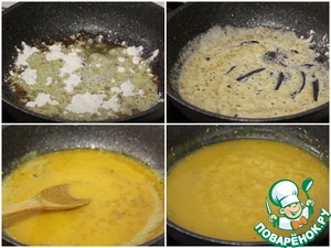 В оставшееся масло всыпать муку, тщательно перемешать, чтобы не осталось комочков.