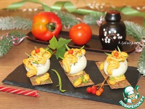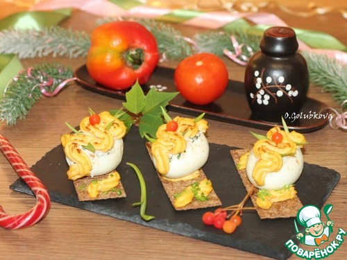 Рецепт «Яичная закуска с ветчиной и хлебцами»: