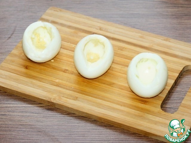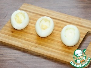 5. Аккуратно извлекаем желток. Получилось 3 заготовки.