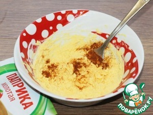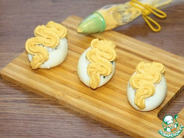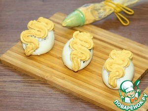 10. Для вкуса и цвета, можно добавить сладкую паприку. Перекладываем желтковую начинку в корнетик ( или пакетик) с насадкой.