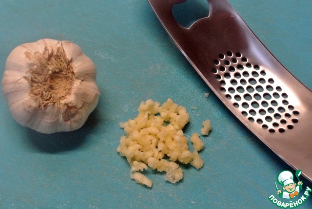 Зубчики чеснока мелко нарезать или пропустить через пресс.
