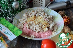Фарш отбить, для этого несколько раз слегка кинуть фарш с небольшой высоты.
