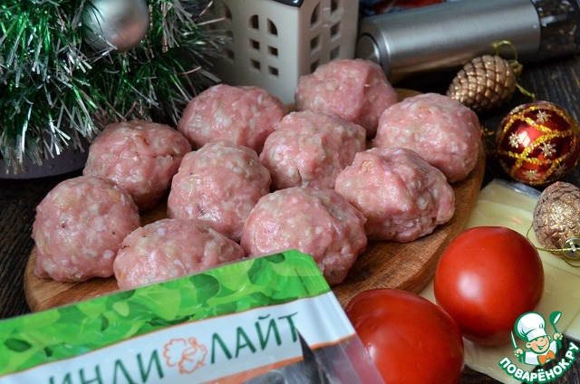 Разделить фарш на 10 одинаковых заготовок и сформовать тефтели.