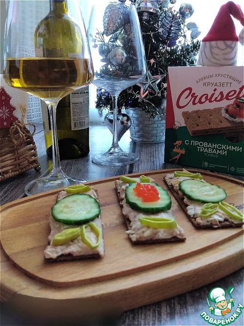 Для такой закуски можно взять просто печень трески, а можно взять печень трески по-мурмански. Я возьму печень тресковых пород по-скандинавски. Нежный готовый паштет, который отлично подошёл для закуски на тонких хрустящих хлебцах Круазетт.