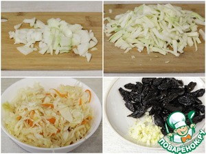 Чернослив нарезать на 2-3 части, чеснок измельчить. -