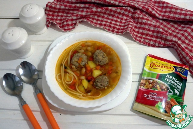 Рецепт «Суп с фрикадельками, фасолью и лапшой»: