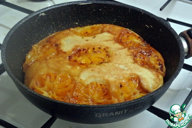 Лёгкий домашний пирог. Очень актуален зимой. Пахнет мандаринами и Новым годом))) С удовольствием готовила на сковороде 24 см со съемной ручкой, стеклянной крышкой, АП линия "Granit ultra" ТМ KUKMARA.