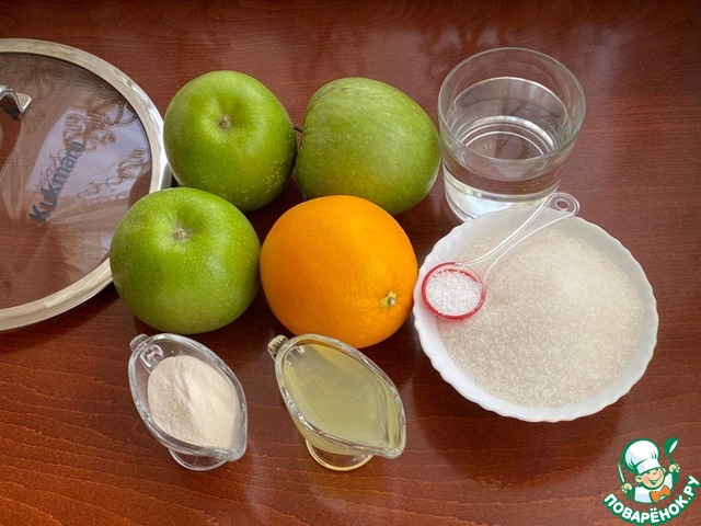 Пока мармелад остывает, приготовим фруктовое пюре для основной зефирной массы. Для этого подготовьте все необходимые ингредиенты.