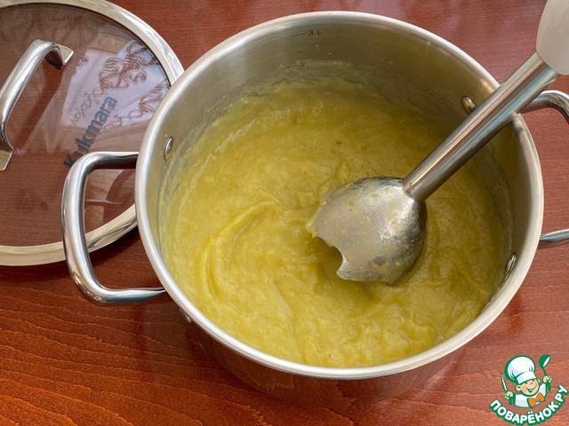 Горячее фруктовое пюре пробейте блендером и протрите через сито.