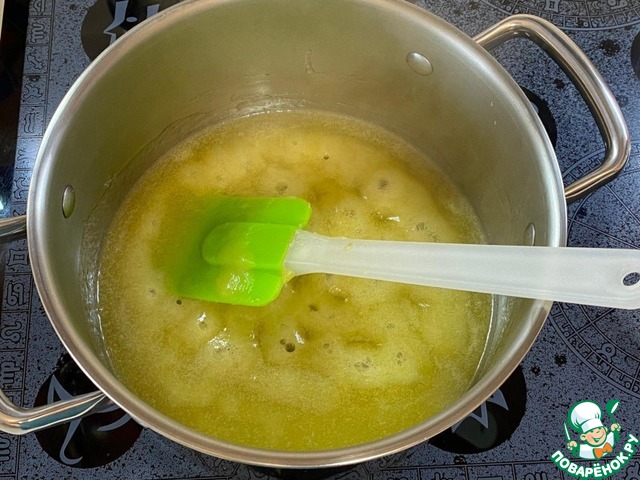 Мармеладную массу доведите до кипения и проварите помешивая, 2-3 минуты.