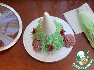 Для украшения елочки приготовьте аналогичным образом вторую порцию зефирной массы из остальных ингредиентов.