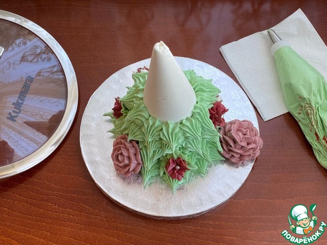 Когда основа елочки застынет, аккуратно установите ее на блюдо.