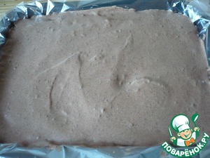 Приступаем к сборке торта. Выкладываем первый ряд коржей в форму у меня размером 25х18 (вы можете формировать торт любой формы: прямоугольный, квадратный, треугольный, круглый, по вашему желанию). Форму застелите пищевой плёнкой, чтобы было удобно вытащить готовый торт. Коржи покрываем кремом. И так чередуя коржи и крем, формируем торт. Пропитывать коржи в этом рецепте не надо. Последним слоем выкладываем крем. Сверху накрыть торт пищевой плёнкой и убрать в холодильник, пропитаться и стабилизироваться на 6 часов, я обычно убираю на ночь.