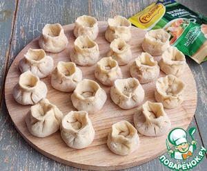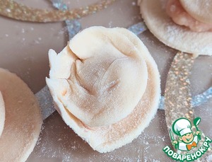 Защипываем края пельмешка, формируя "мешочек".