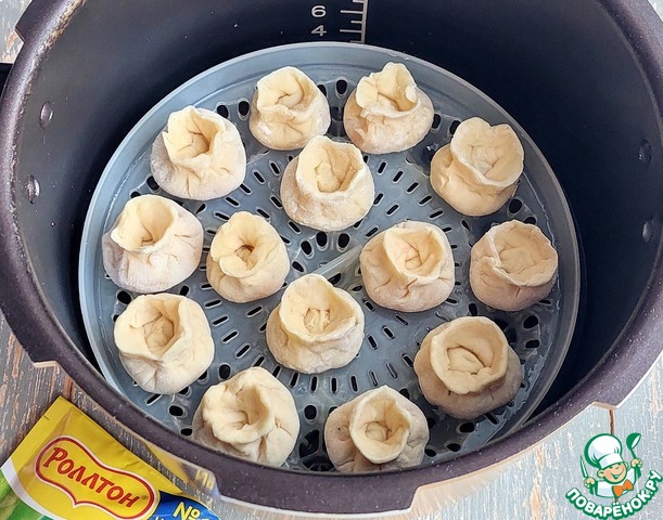 Пельмешки можно приготовить, как обычно, отварив в подсоленной воде. Я решила сегодня приготовить их на пару в мультиварке. Специальную подставку для готовки на пару смазать растительным маслом (1/2ч. л.). Разложить на ней пельмешки. Закрыть мультиварку, включить режим "пароварка" и готовить 15-20 мин.