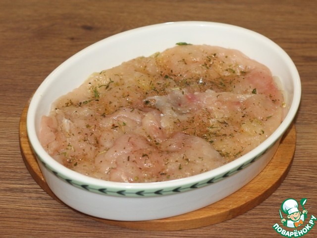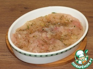 5. Смазываем кусочки филе с 2 сторон маринадом и убираем в сторону.