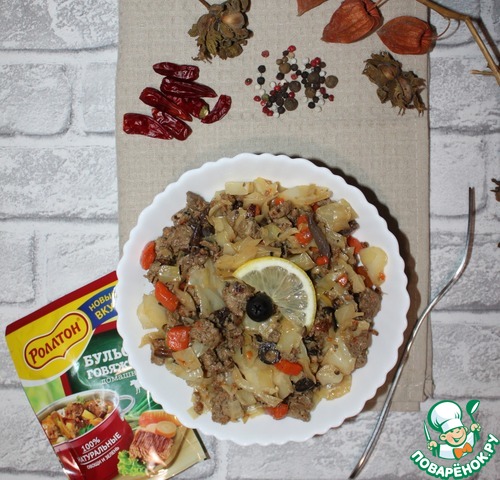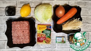 Домашний фарш с овощами - отличное сочетание вкусов. Три грибочка внесут в него дополнительные нюансы: белые - неповторимый аромат, эноки - нежный вкус, древесные - хрусткую текстуру. Лимон и оливки добавят яркие цвета и кислинку нашему блюду, а домашний бульон Роллтон заменит соль и придаст дополнительные вкусовые оттенки.