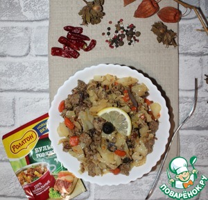- Бульон (сухой Роллтон домашний говяжий) — 1 ч. л.