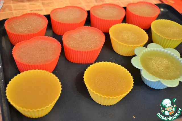 Разлить бульон в формочки разного размера и формы. Поставить в холодильник на ночь.