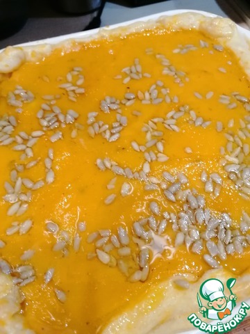 На пюре вылить растопленное сливочное масло и посыпать семечками (подсолнуха или тыквенные). Выпекать при температуре 180 градусов минут 20-25, в зависимости от духовки.