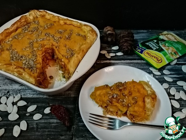 Мне очень нравится этот пирог. Он получается сытный, но в то же время и нежный. Правда тыква попалась очень сладкой, но так даже интереснее вкус.