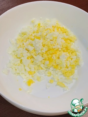 Добавить кукурузу, майонез и немного тертого чеснока.