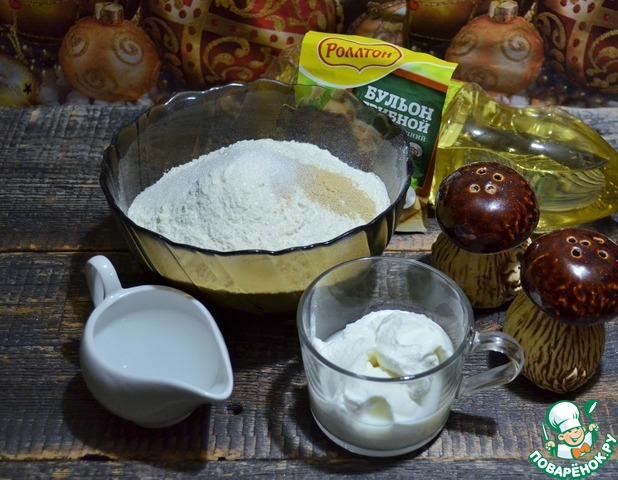 - Бульон (сухой грибной "Домашний" от ТМ Роллтон) — по вкусу