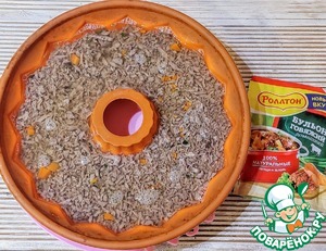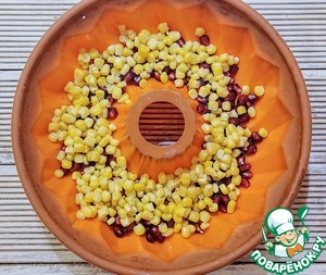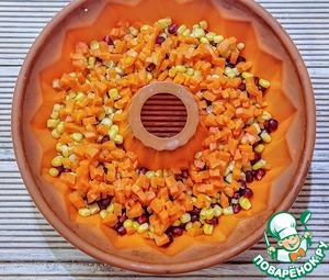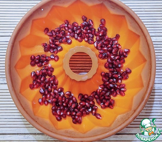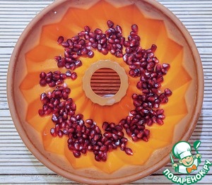 В подготовленной форме для заливного (у меня силиконовая), распределить зерна граната.