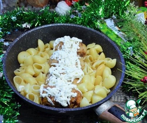 Добавить отваренные макароны, прогреть на среднем огне 5 минут.