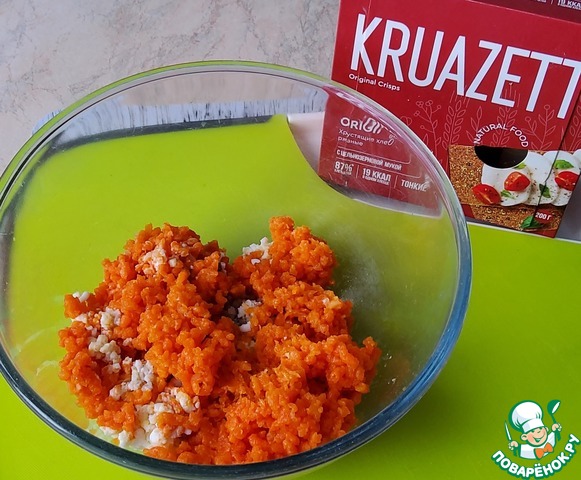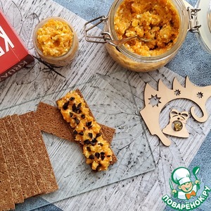 Форшмак, в котором больше овощей, чем рыбы. Но это не делает его менее вкусным. Да и морковка придаёт ему красивый оранжевый оттенок. Попробуйте этот форшмак с хлебцами Kruasett-- это очень вкусно.