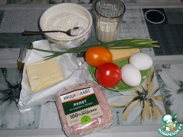 Подготовим продукты. Для приготовления пирога я взяла рулет из индейки с перцем ТМ "Индилайт".