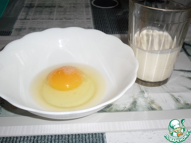 В миску разбиваем яйцо. Добавляем соль. Взбиваем.