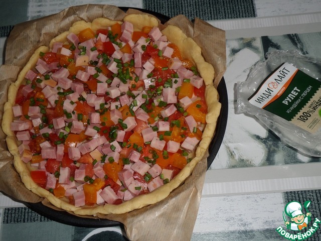 Рецепт «Открытый пирог с индейкой и помидорами»: