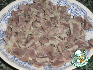 Желудки отварить, остудить, порезать.