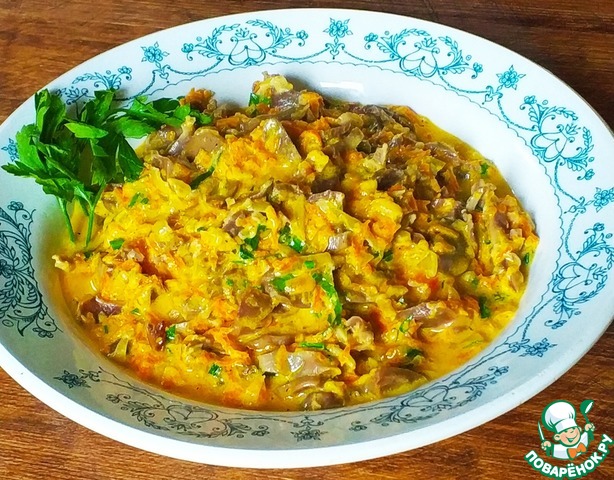Рецепт «Куриные желудки "Пупочки-грибочки"»:
