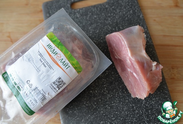 Для приготовления этого салата бёрём филе индейки. Я взяла филе бедра индейки "Индилайт". Филе можно обжарить или сварить. Для жарки, филе режем тонкими полосками и обжариваем на среднем огне около 20 минут. Я предпочла сварить филе, чтобы уменьшить жирность салата. Филе заливаем водой, солим, доводим до кипения и варим на слабом огне 40 минут.