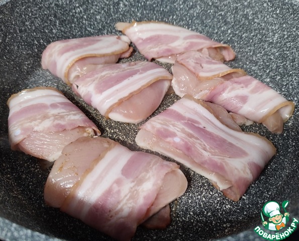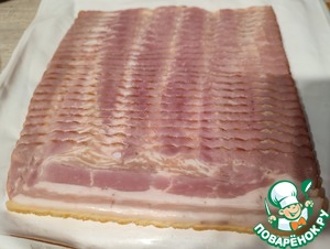 - Бекон (Количество бекона берётся по количеству кусочков мяса. Бекон нужен варено-копченый .) — 140 г