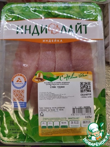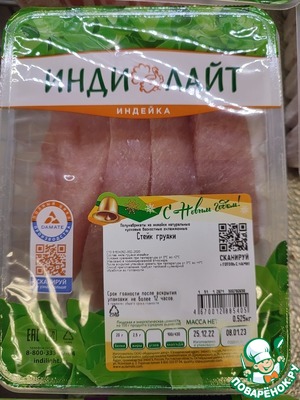- Индейка (Для данного блюда удобно использовать готовые стейки филе индейки ТМ Индилайт) — 500-700 г