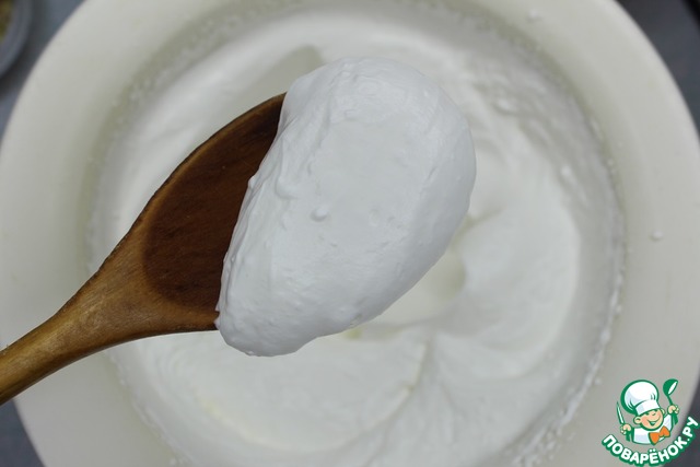 Сливки с сахарной пудрой взбить.