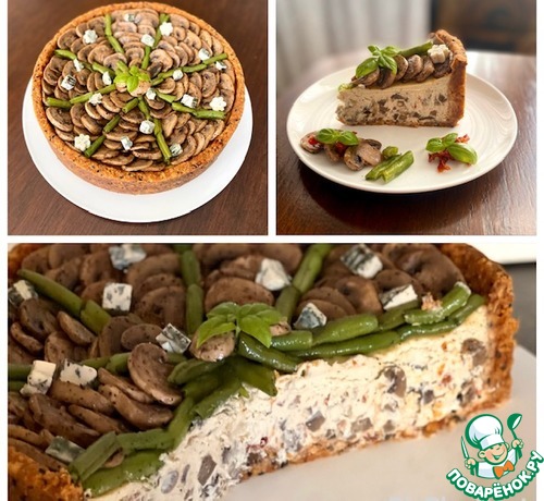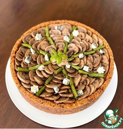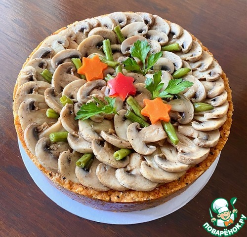 Я грибы резала мелко для начинки, а для украшения слайсами и отдельно их обжаривала. Но для украшения также можно кусочками оставить, по вашему желанию. -