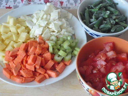 Ингредиенты для «Овощной суп с фрикадельками из индейки»: