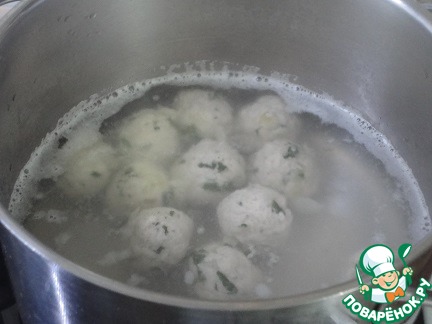 Закипятите воду, посолите и отваривайте в ней фрикадельки 8 минут.