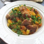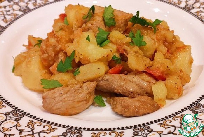 Переложить мясо с овощами в теплое блюдо и подавать сразу на стол.