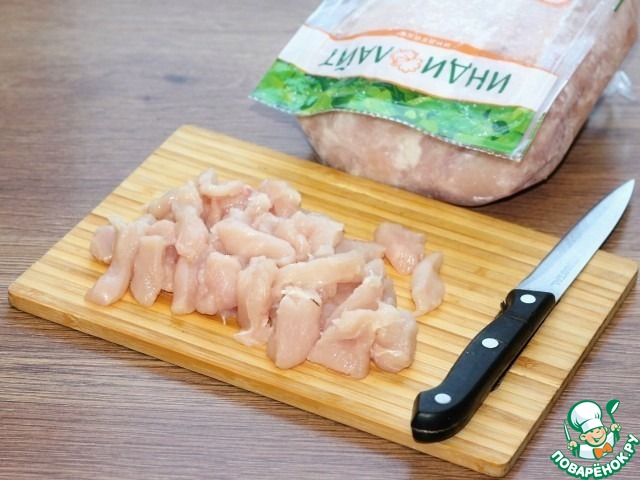1. Филе индейки нарезать небольшими порционными кусочками.